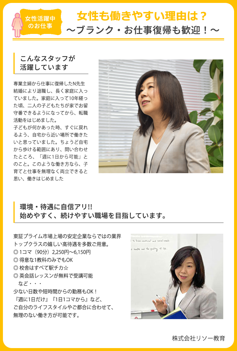 「教えることが好き」そんな方に♪【”しゅふ活躍中”個別塾講師】週1日からOK/1コマ2400円~