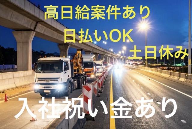 | 仕事内容 | 高速道路工事に伴う交通規制や誘導を行うお仕事です! |