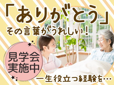 | 仕事内容 | <無資格・未経験スタートOK>利用者様のサポートをお任せします。 |
